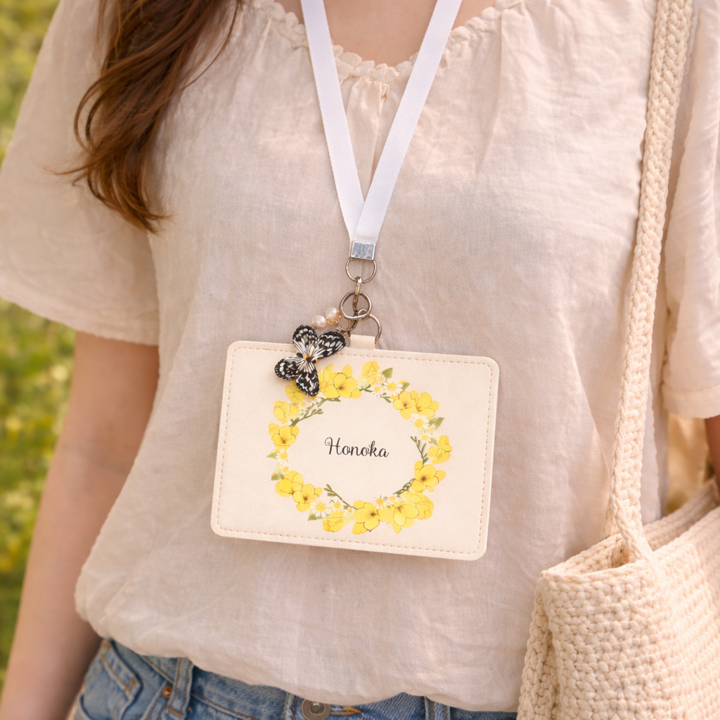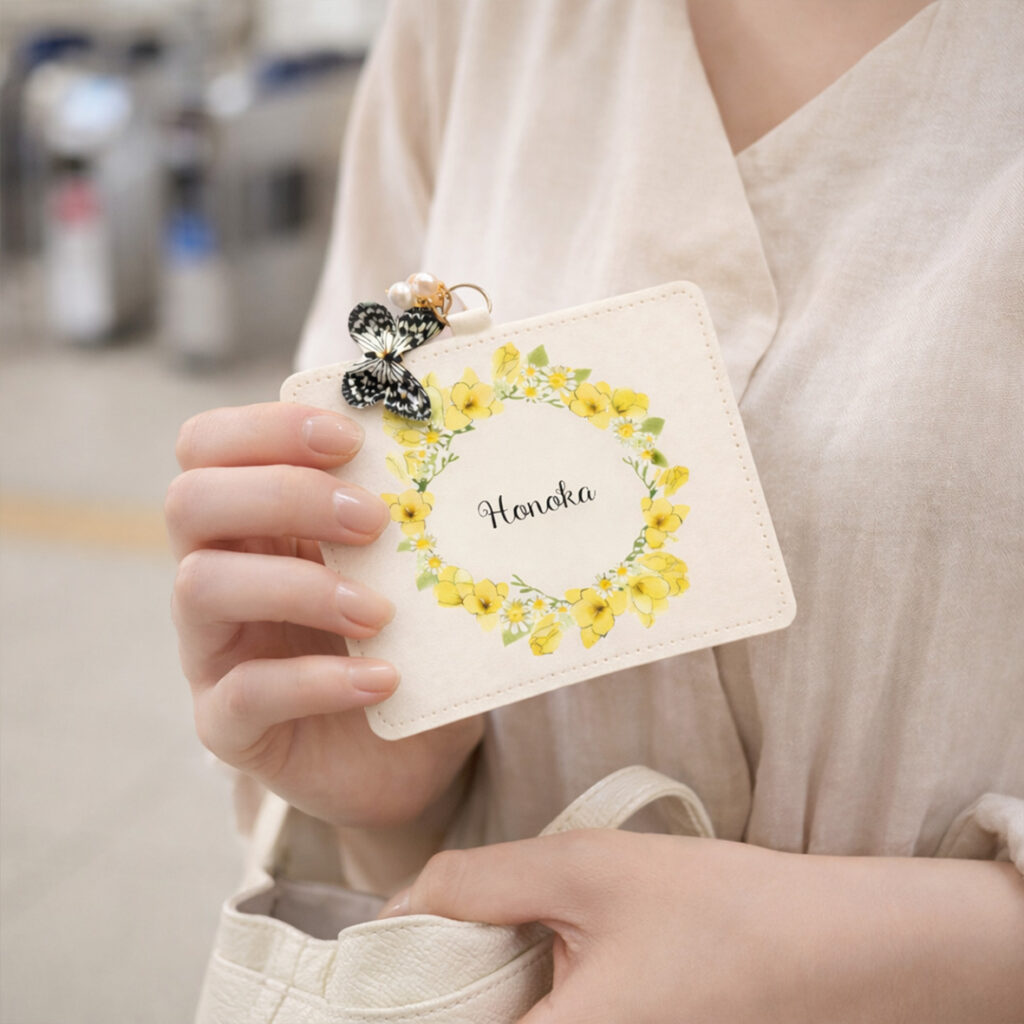 まるでパスケースの誕生花の周りをひらひらと舞っているようなデザインです🦋